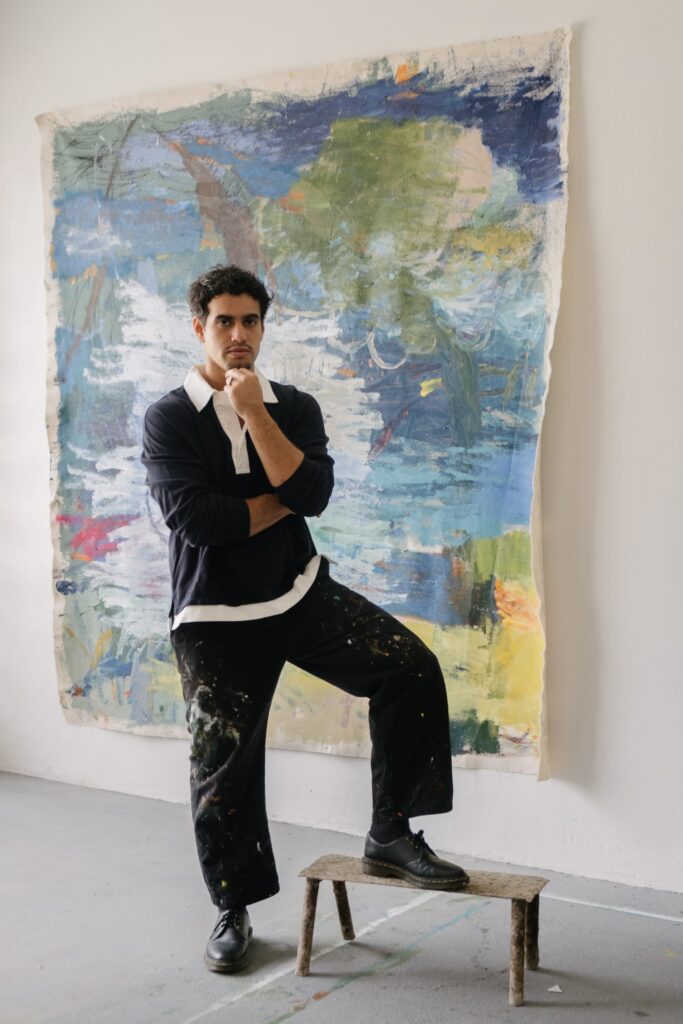 Em sua obra, diferentes linguagens se encontram, cravadas no contemporâneo, mas em possíveis paralelos com legados da action painting, do expressionismo abstrato e da pop art. Influenciado pelo acúmulo de informações do mundo digital, visíveis principalmente na iconografia de seu trabalho, ele também cultiva interesses incomuns para o circuito de arte contemporânea, como o Jiu-jitsu, que se desdobra na fisicalidade envolvida em suas pinturas de grande formato.