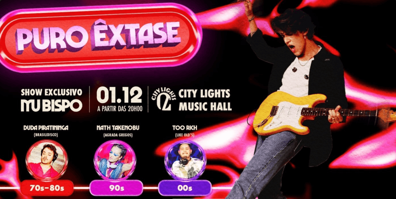 O cantor e compositor Mu Bispo, um dos destaques da nova geração da música brasileira, comemora nesta quinta-feira (01), o lançamento do seu mais novo EP, “96′ Live in Studio”, com festa e show exclusivo em São Paulo. O evento, chamado “Puro Êxtase”, contará também com a participação dos DJ’s Duda Piratininga, Nath Takenobu e Too Rich. No som, alinhados com a proposta do novo EP de Mu, muita música dos anos 80, 90 e 2000. “96′ Live in Studio”, lançado pelo selo Olga Music, tem produção do próprio artista em parceria com Pedro Montagnana e já está disponível em todas as plataformas digitais, além de DVD no YouTube.